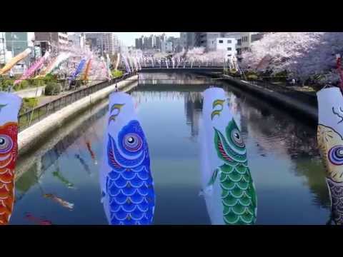南海線堺駅周辺の内川・土居川付近の鯉のぼり-堺旧港と周辺(2015年4月2日)