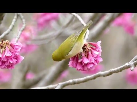 大仙公園のカンヒザクラとメジロ(2016年3月16日)-2