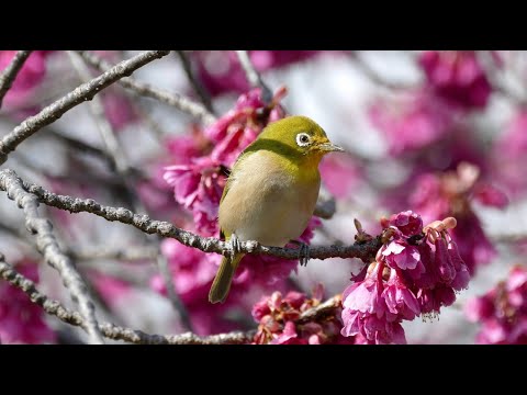 大仙公園の寒緋桜とメジロ(2020年3月5日)
