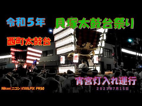 令和5年 貝塚太鼓台祭り 宵宮灯入れ運行 西町太鼓台(2023年7月15日)
